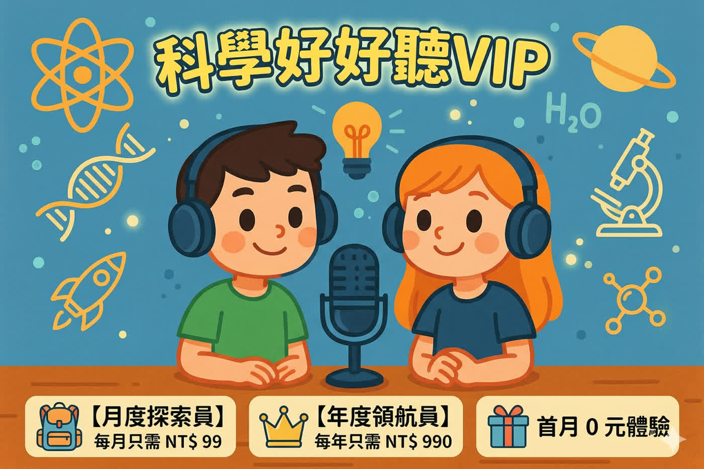 感謝大小聽眾的支持!為了提供更優質的科學節目,VIP 會員方案正式上線。每個月只需「一杯咖啡的錢」,就能把會說話的科學圖書館帶回家!